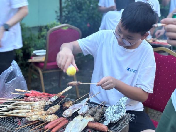 傍晚,大家在燒烤場進行趣味BBQ燒烤,一起串制、刷油、燒烤,其樂融融。之后的篝火晚會與戶外KTV,讓我們在熊熊篝火旁盡情釋放熱情,歌聲與歡笑一同跳動。當晚,便入住了紅海灣海藍酒店,游玩的疲憊在此刻得到舒緩。